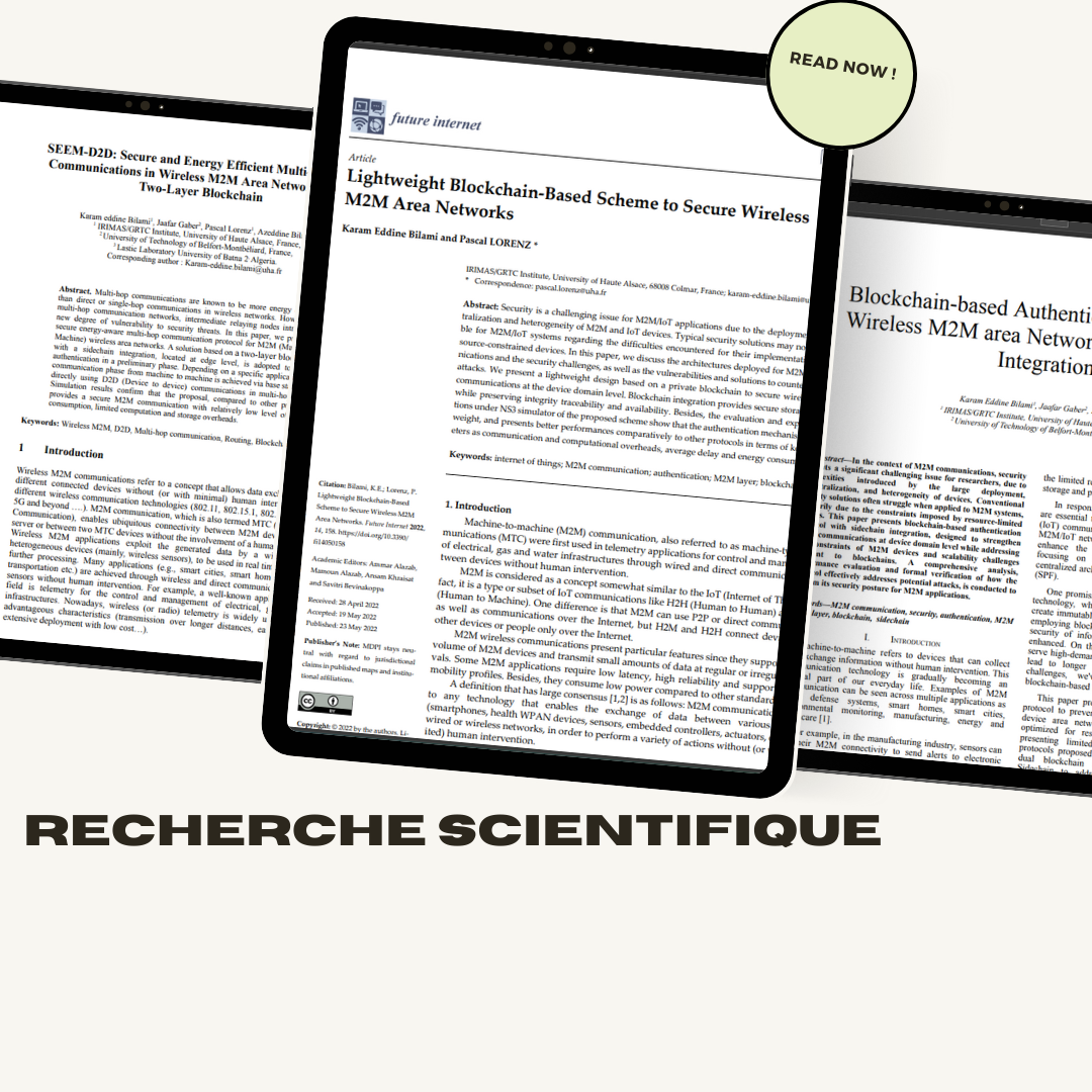 Docteur en informatique, je me consacre à la recherche sur l’utilisation de la technologie Blockchain pour renforcer la sécurité des communications IoT (Internet of Things), avec un intérêt particulier pour les communications M2M (Machine to Machine).